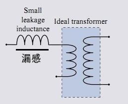 But In practice, transformers are always not ideal. There is always a part of the magnetic flux that does not participate in energy transfer and creates trouble on the primary side, causing many adverse effects. The inductance generated by this part of the magnetic flux that does not transfer energy to the secondary side is the leakage inductance. The equivalent diagram of the actual transformer is as follows: