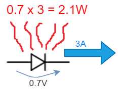 But when passed At 3 amps the diode will generate 2.1 watts of heat, which is a lot. So you either use a more powerful diode, or a diode with a lower forward voltage drop, such as a Schottky diode.